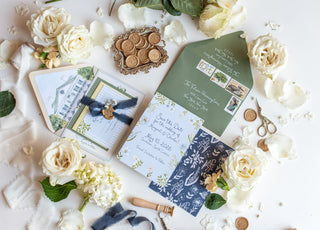 "Rachel did such an amazing job on our wedding stationery! My husband and I had a small destination wedding in Ireland and really wanted our invitations to match our theme/aesthetic and after telling Rachel what I had in mind and sending over a few pieces of inspiration, she brought it to life and it was even better than I could have imagined! We loved the suite so much that we had her create our menu, wedding sign, and welcome note with weekend itinerary! She was so easy to work with and was able to print and send everything over to us so that I didnβt have to worry about anything. (I even worked with her afterward our wedding for a custom house portrait for one of my friends!). I would highly highly recommend!! π€"- Hannah O'Reilly