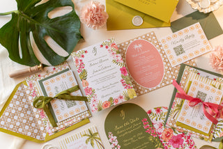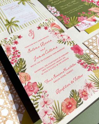 For the couple who loves color, palms, and a festive welcome for a tropical wedding.