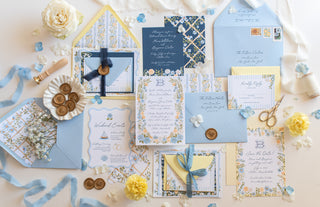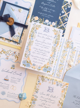 For the couple who loves seaside color, easy elegance, and a crisp finish.