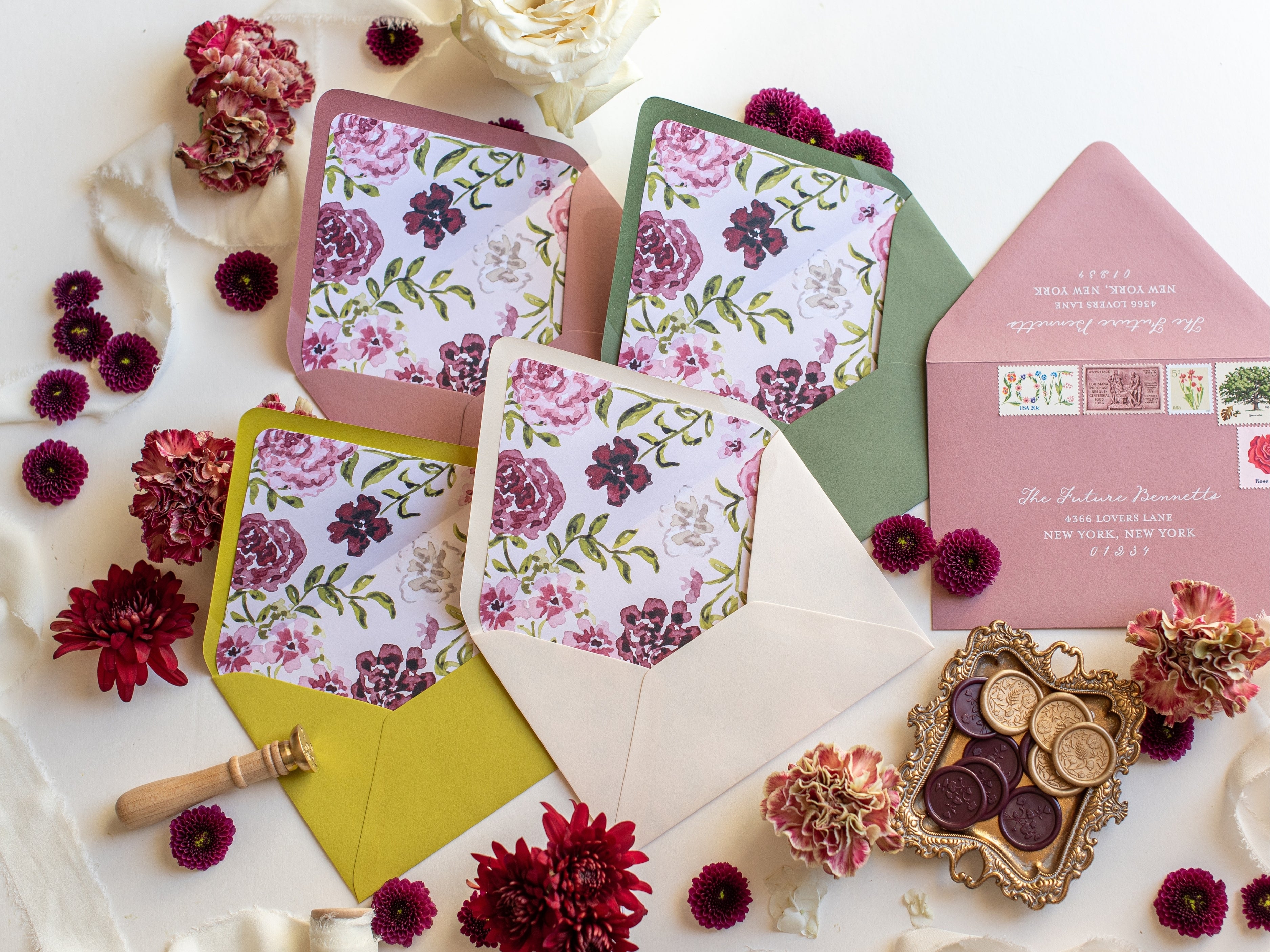 It depends on your date! Semi-Custom moves quickly—I recommend mailing Save the Dates ~6 months ahead and Invitations ~3 months ahead (earlier for destination weddings). From the time you place your order, production is typically about 3-6 weeks, with specialty finishes, custom-art add-ons and embellishments adding a bit of time. If your timeline is tight, I’ll prioritize your project so everything arrives before your mail date.