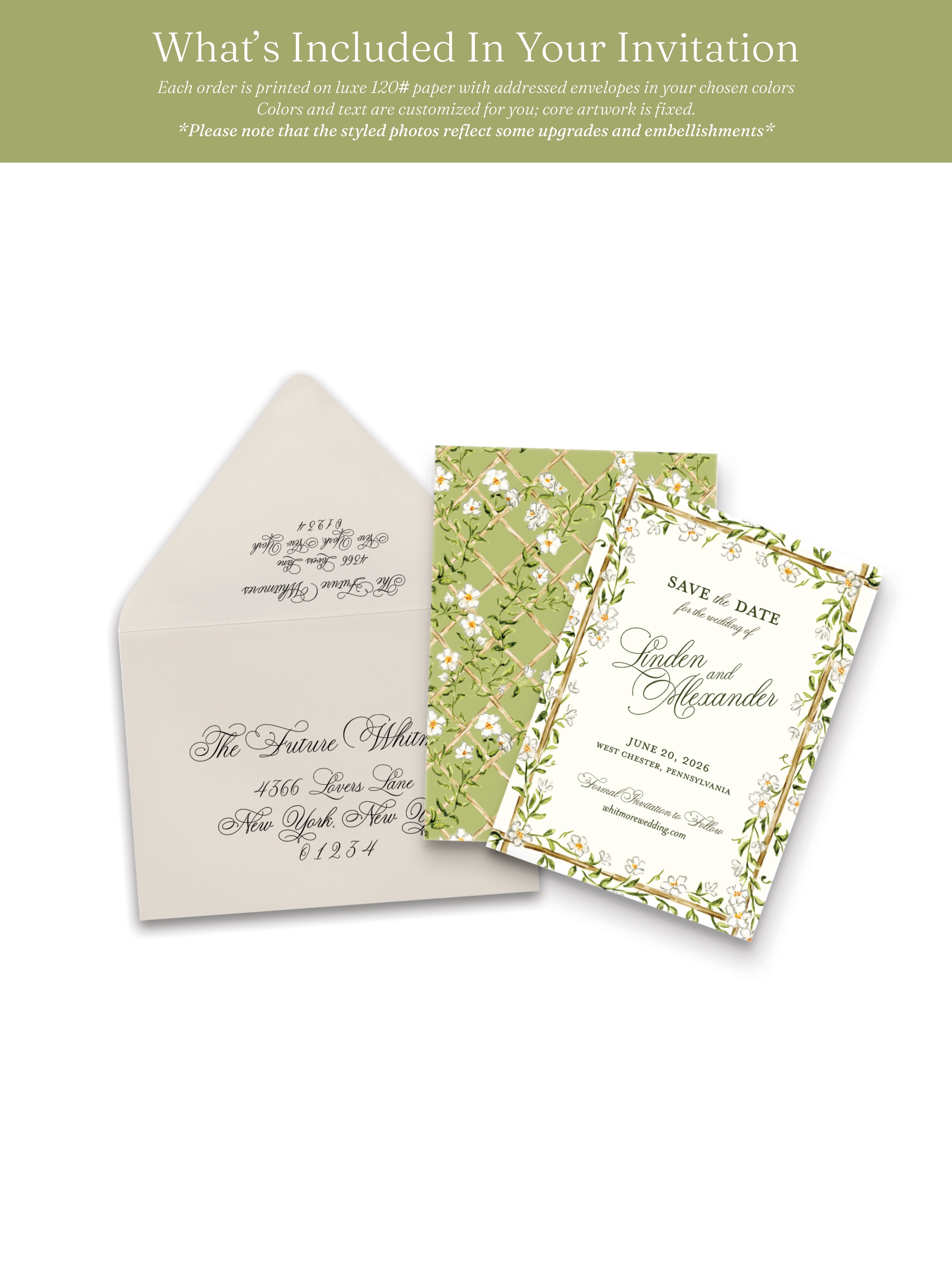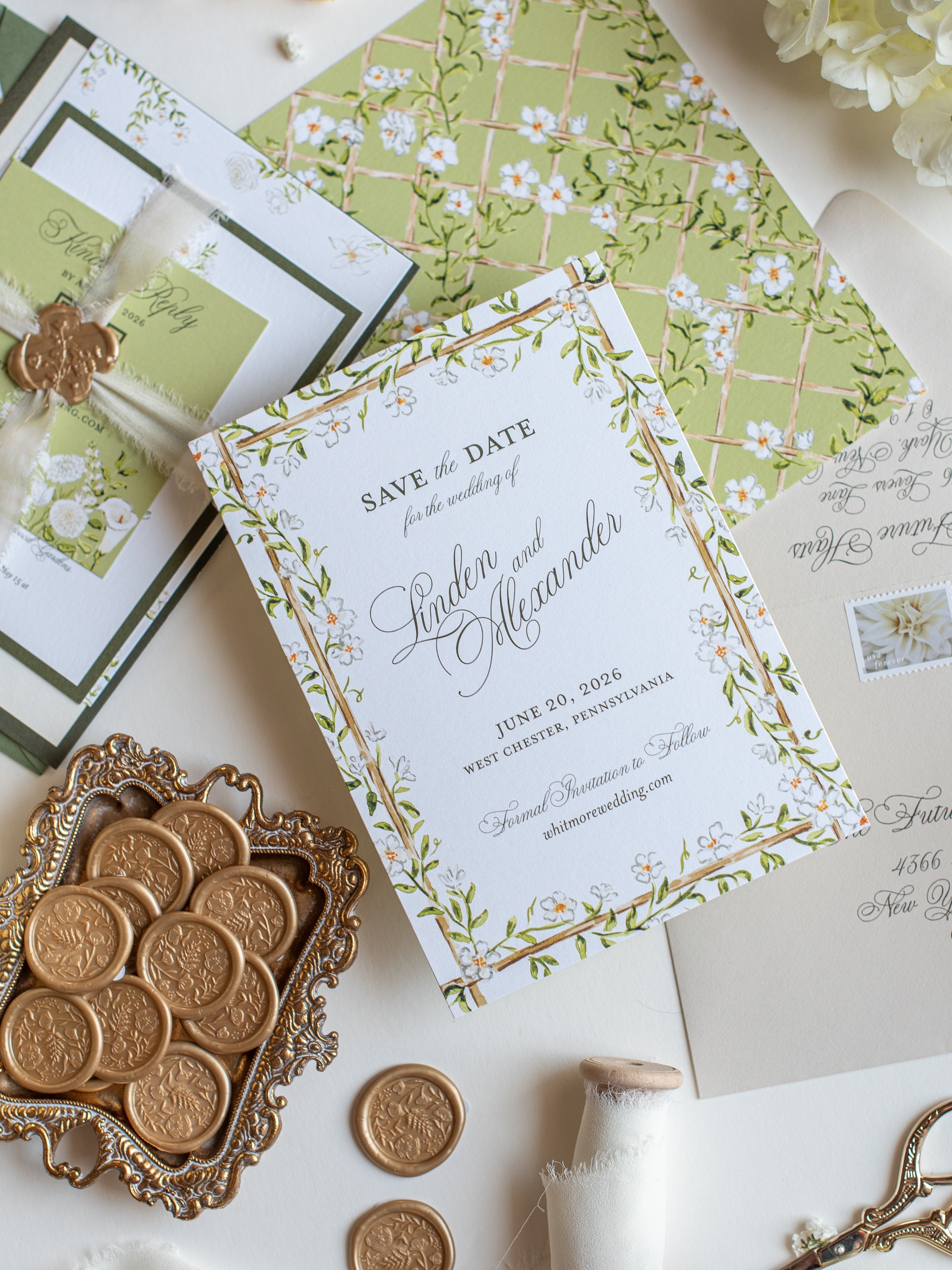 Coordinating piece: Pair with the Linden Save the Date for a cohesive start to your paper story.