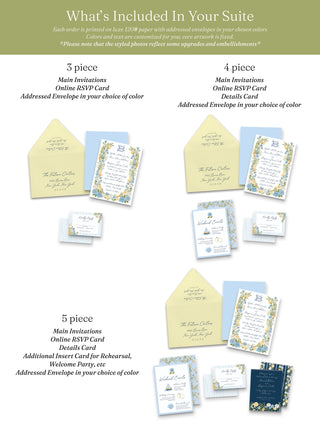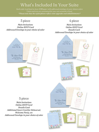 - 3-Piece Suite — Invite, RSVP, printed outer envelope